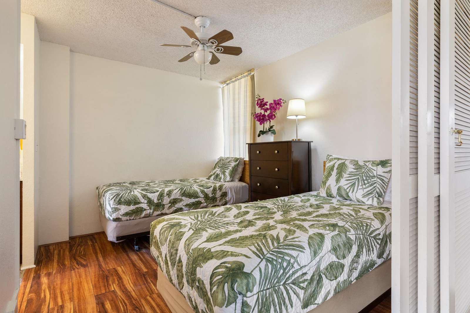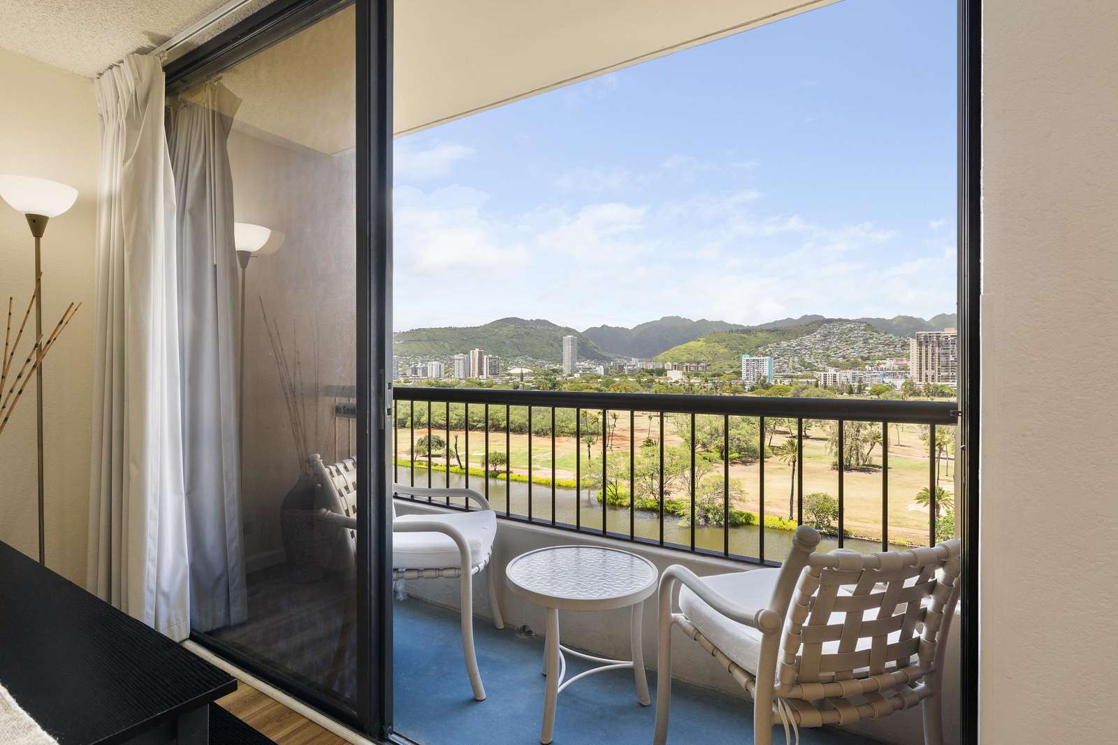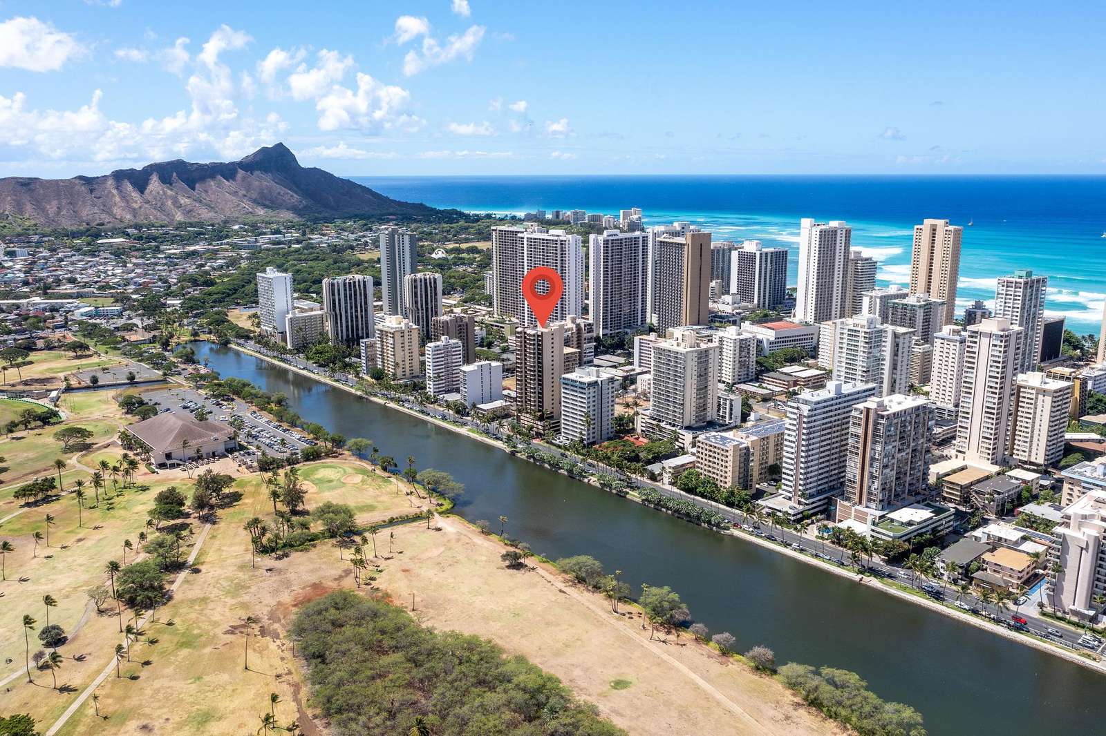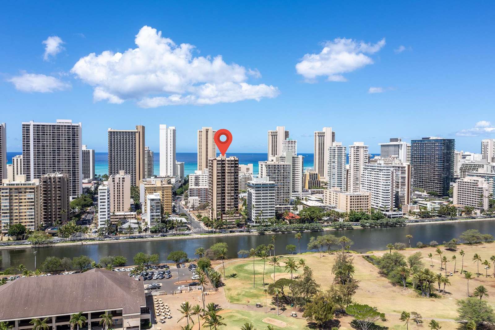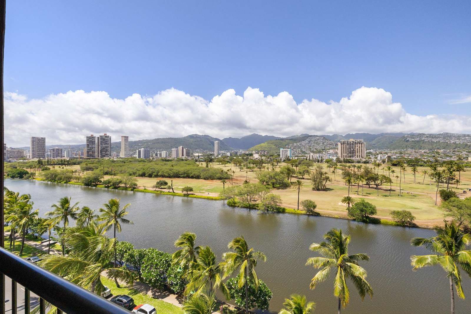 **THIS IS A LEGAL VACATION RENTAL** Alohana Monte Vista 1005. 10th floor 2 Bedroom - Free Wifi, Cable TV & Free Parking. Located beside the Ala Wai Canal this 2 bedroom1 bath condo at the Monte Vista features stunning views of the Ko'olau Mountain range looking across the Ala Wai golf course. The condo has hardwood floors throughout and features a "Jack and Jill bathroom"*. The master bedroom has a queen size bed and a window AC, and the second bedroom has 2 twin beds. The living room has a queen size sleeper sofa with a memory foam mattress, a ceiling fan and a 46" flat screen TV. The full-size kitchen is equipped with a dishwasher, 4 burner stove with oven, refrigerator, dining table and a laundry center. There's a pool area with charcoal BBQ and an ocean view but we've also provided 2 backpack beach chairs for adventures on the beach and outdoors!