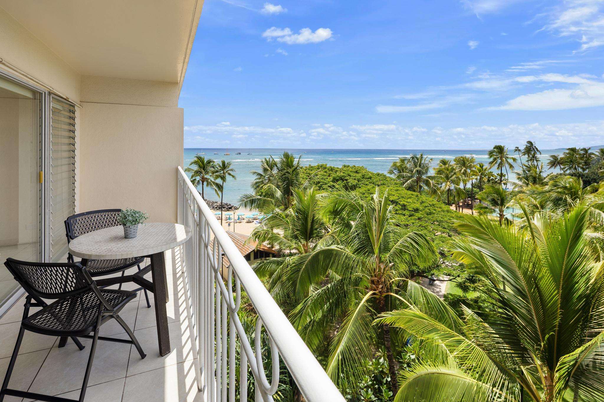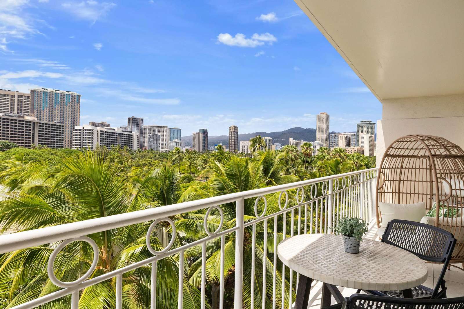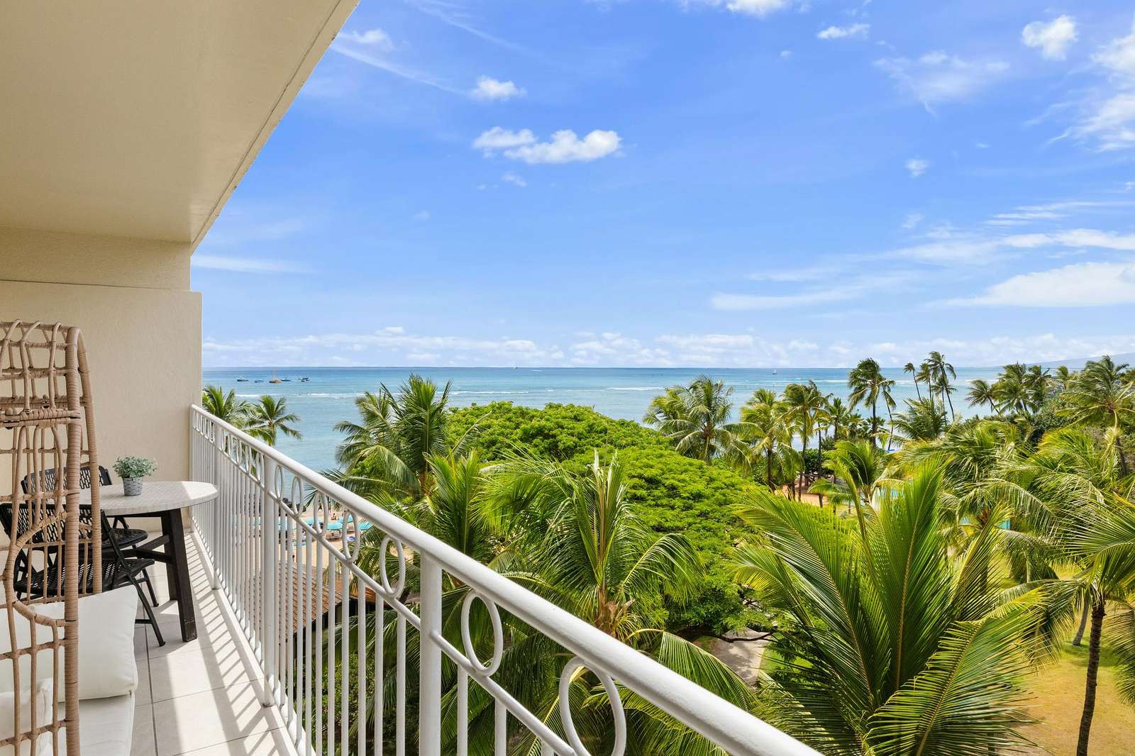 This luxurious 1BD/1BA at Waikiki Shore is located literally just steps away from Waikiki Beach and Fort DeRussy. Enjoy a glass of wine or cup of coffee on the lanai, overlooking the ocean!