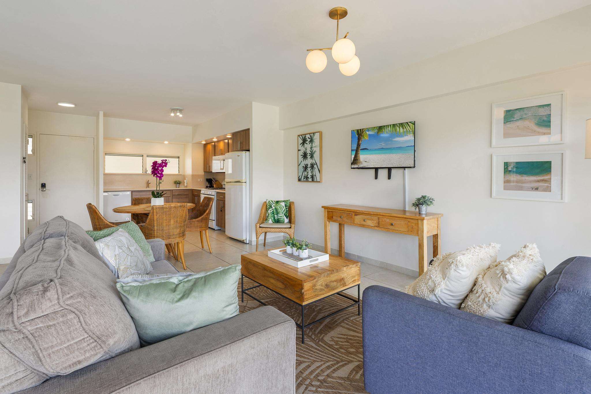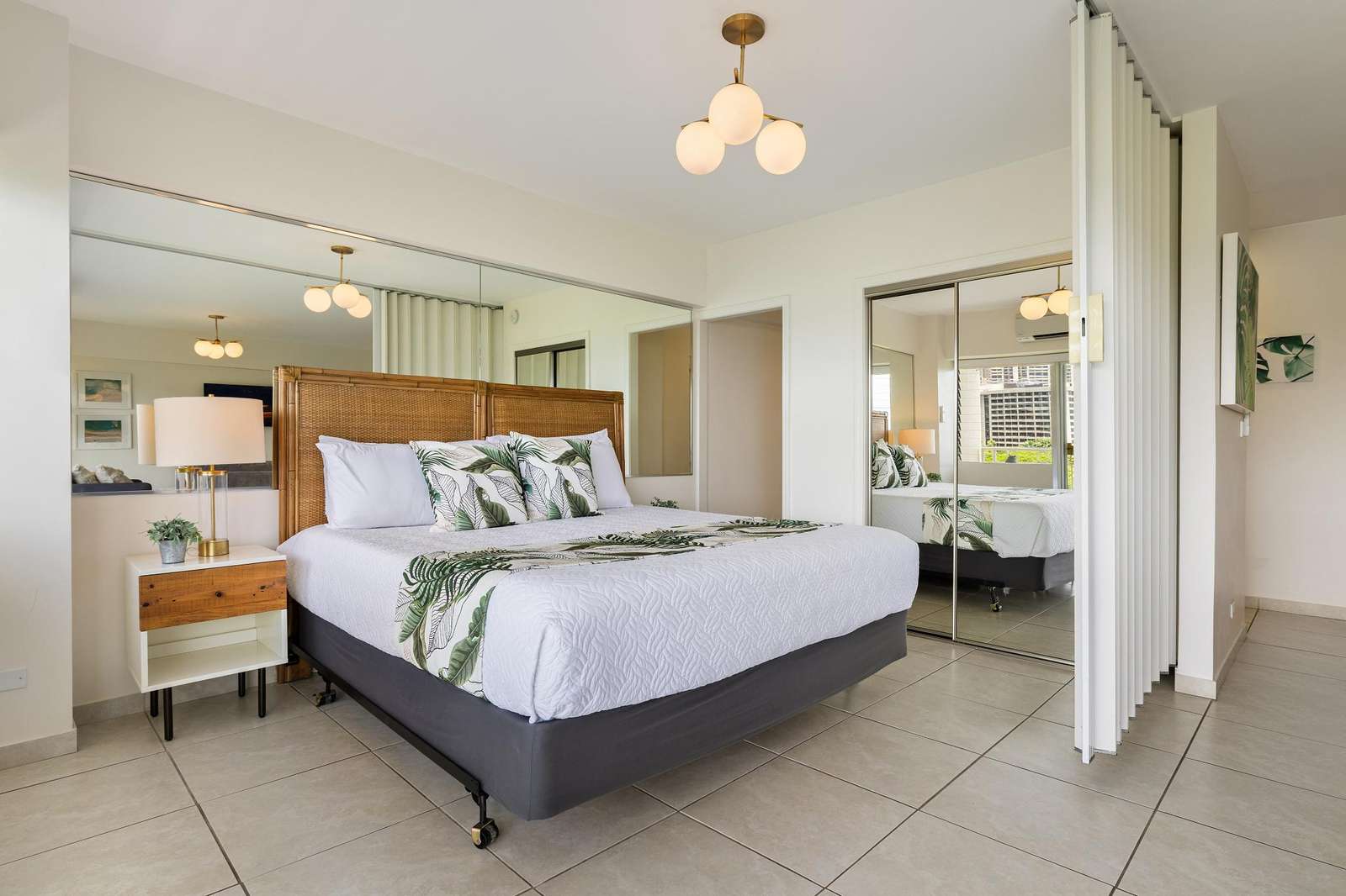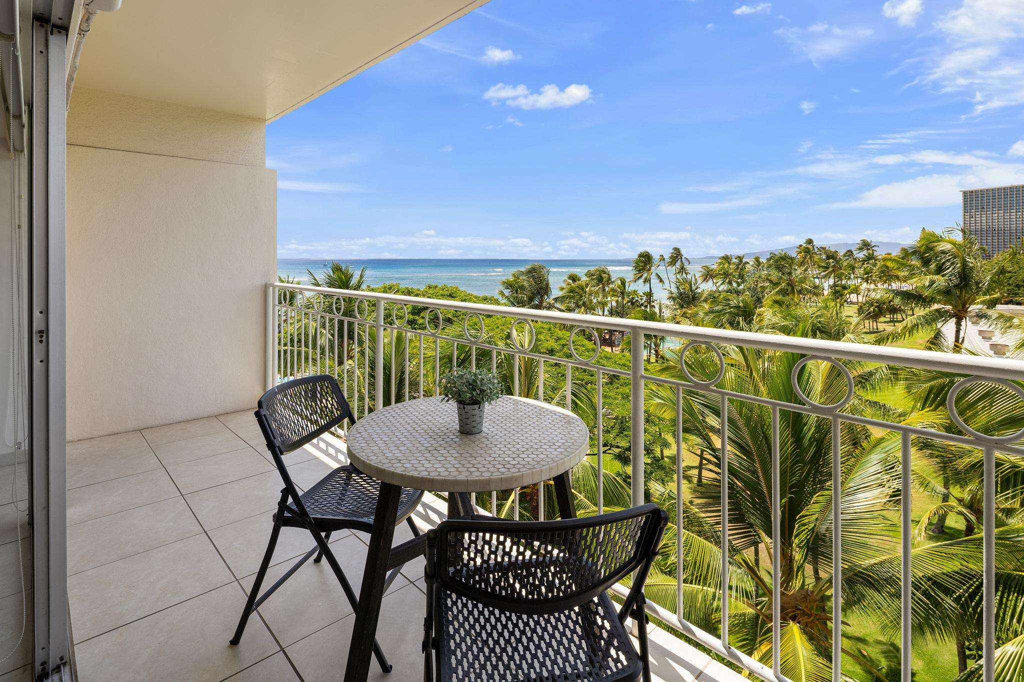 This luxurious 1BD/1BA at Waikiki Shore is located literally just steps away from Waikiki Beach and Fort DeRussy. Enjoy a glass of wine or cup of coffee on the lanai, overlooking the ocean!
